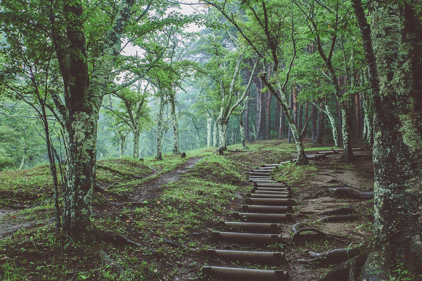 山頂から河口湖の天上山や西桂町の三つ峠まで続き、日常的にハイキングできる登山道。